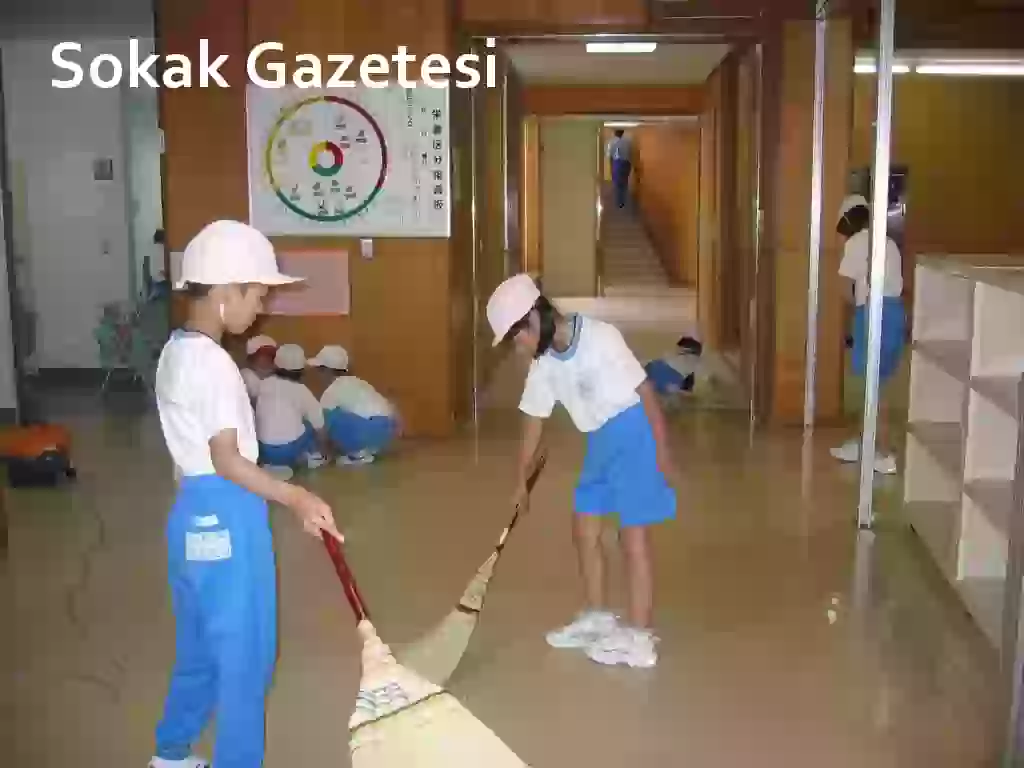 Japon okullarında “o‑soji” adı verilen uygulamayla, öğrenciler her gün sınıf, koridor ve tuvalet temizliğine katılır. Genelde öğle yemeği sonrası veya ders sonlarında 10–15 dakika sürer